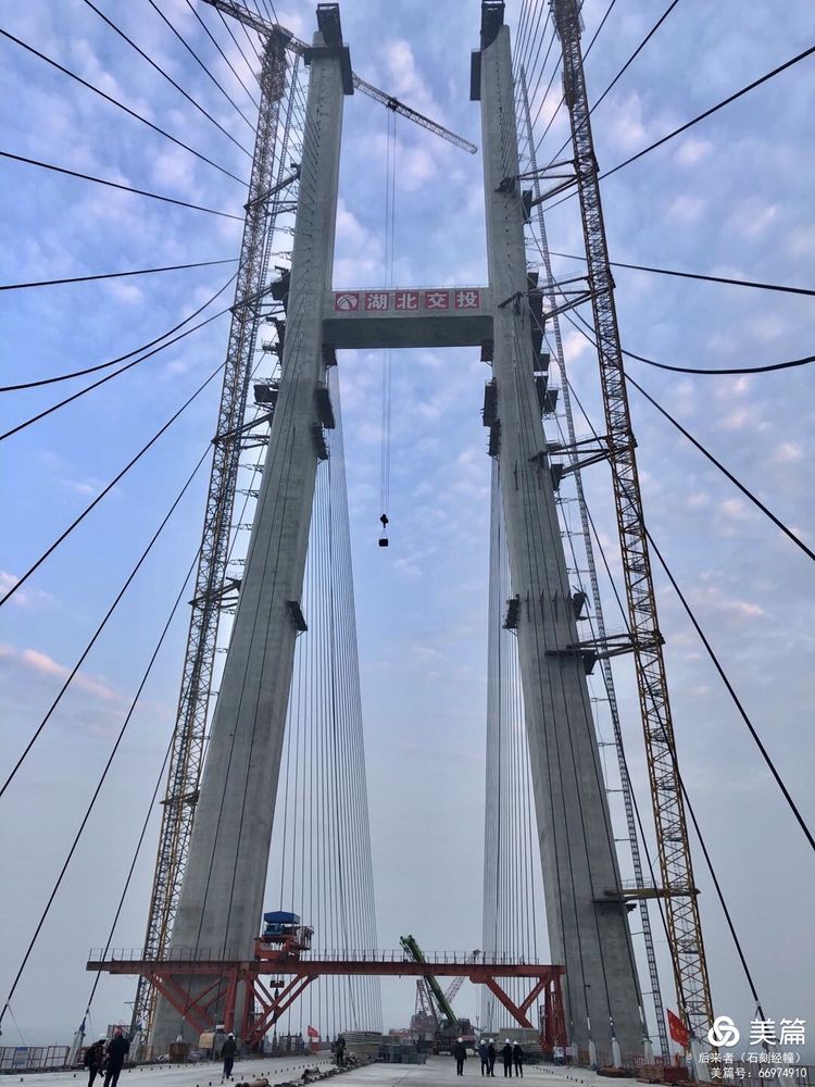 湖北省赤壁長江公路大橋機電工程施工項目起于洪湖市烏林鎮,止于赤壁市赤壁鎮,全長11.2公里,其中長江大橋全長3.35公里,全線采用雙向六車道高速公路標準建設,設計速度每小時100公里,批復概算32.5億元,批復工期48個月。大橋建成后,從赤壁過江到洪湖僅需5分鐘。項目創新設計方式,大橋主塔采用H形設計,北主塔高217.33米,南主塔高223米;主跨720米打破了鋼混結合及鋼混疊合梁斜拉橋主橋最大跨徑600米的世界紀錄,成為新的世界第一。2021年6月3日已經通過交工驗收,通橋指日可待。