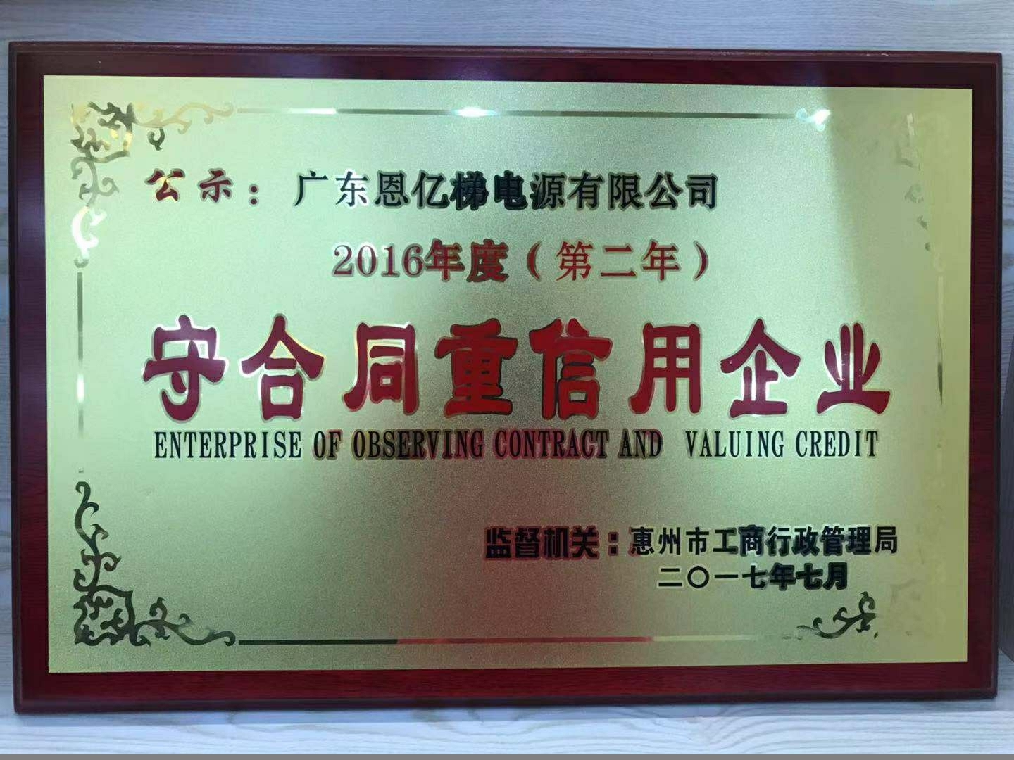 守合同重信用企業(yè)證書(shū)
